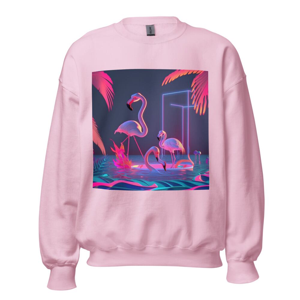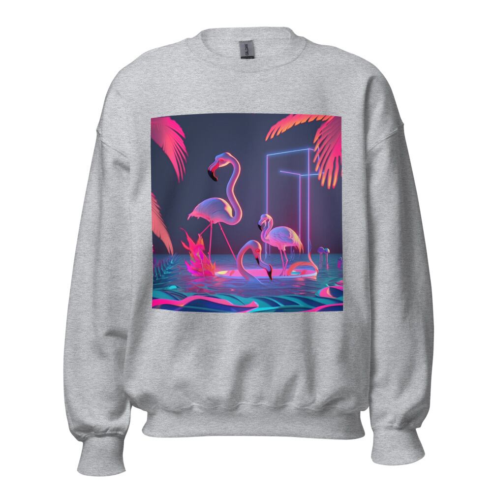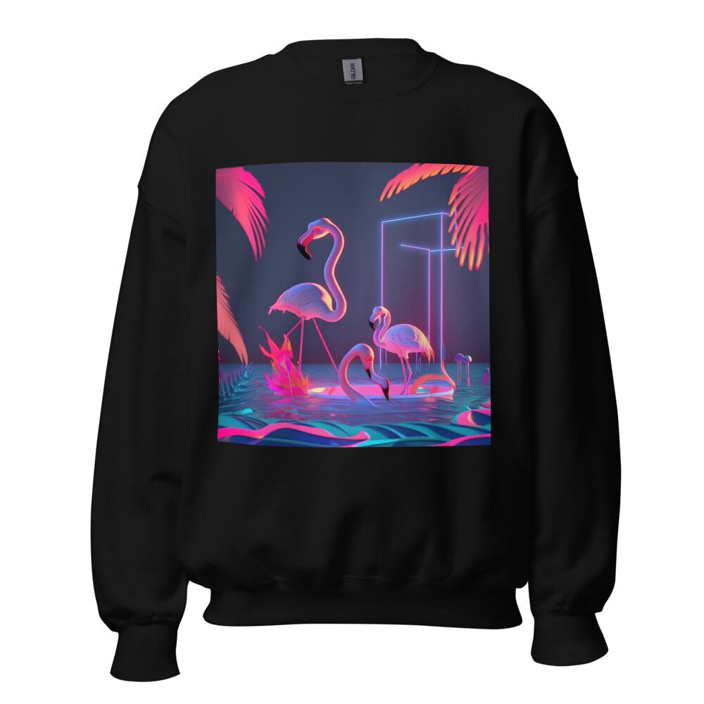 Vaporwave 80s 90s Three Pink Flamingos Synthwave Retrowave Citypop Aesthetic Unisex Sweatshirt | RRRS