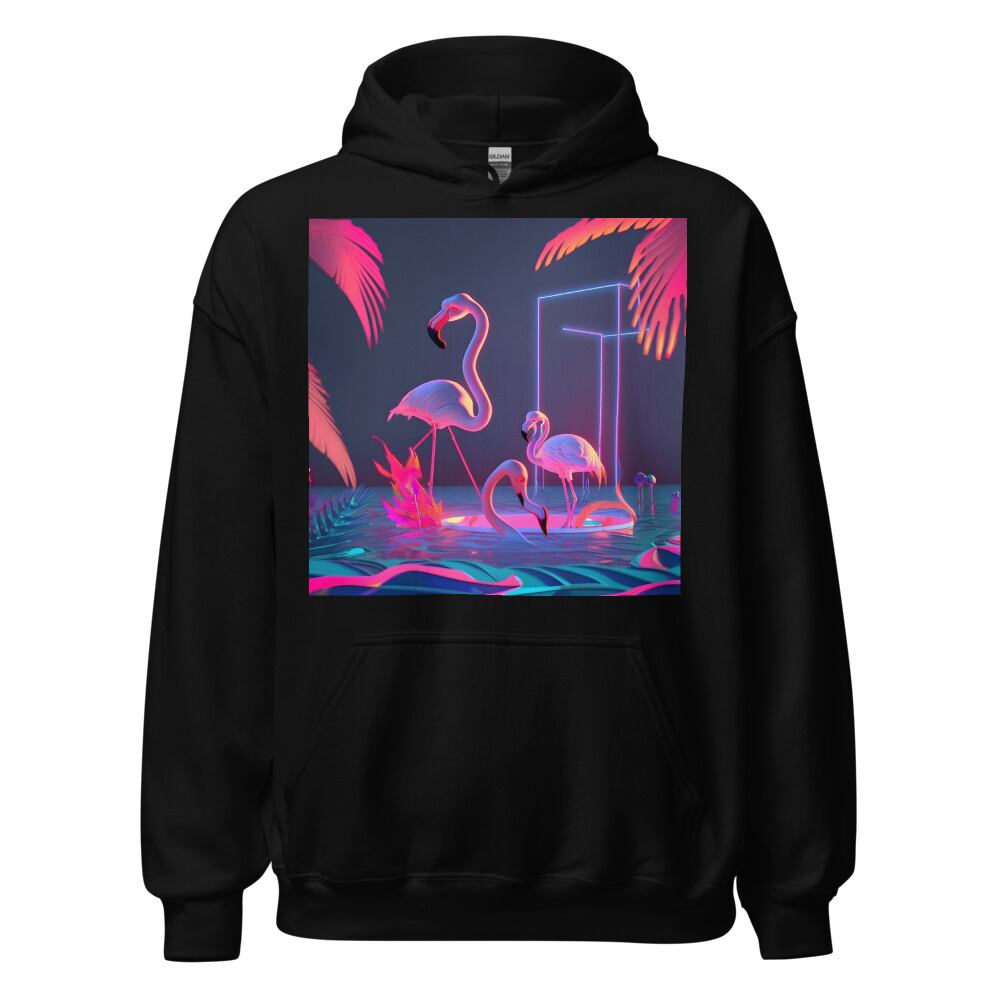Vaporwave 80s 90s Three Pink Flamingos Synthwave Retrowave Citypop Aesthetic Unisex Hoodie