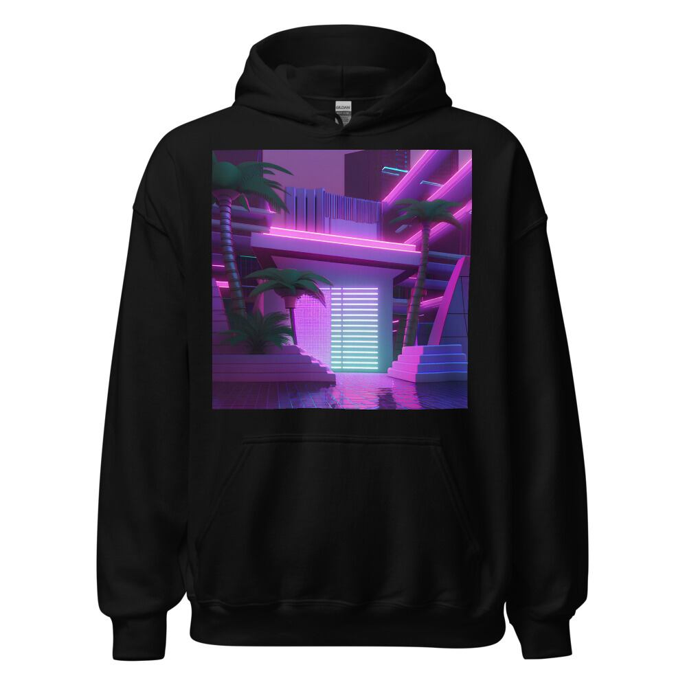 Vaporwave 80s 90s Building Entrance Synthwave Retrowave Citypop Aesthetic Unisex Hoodie