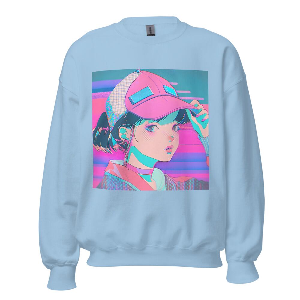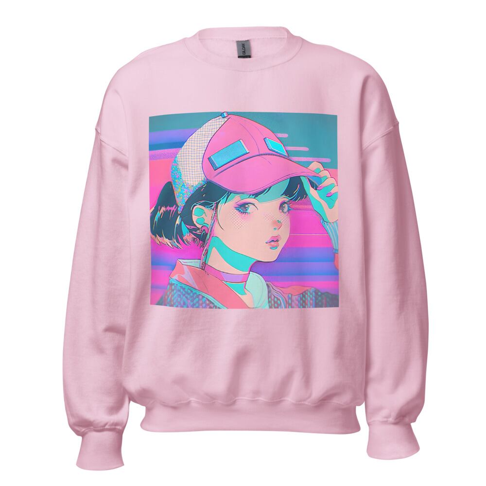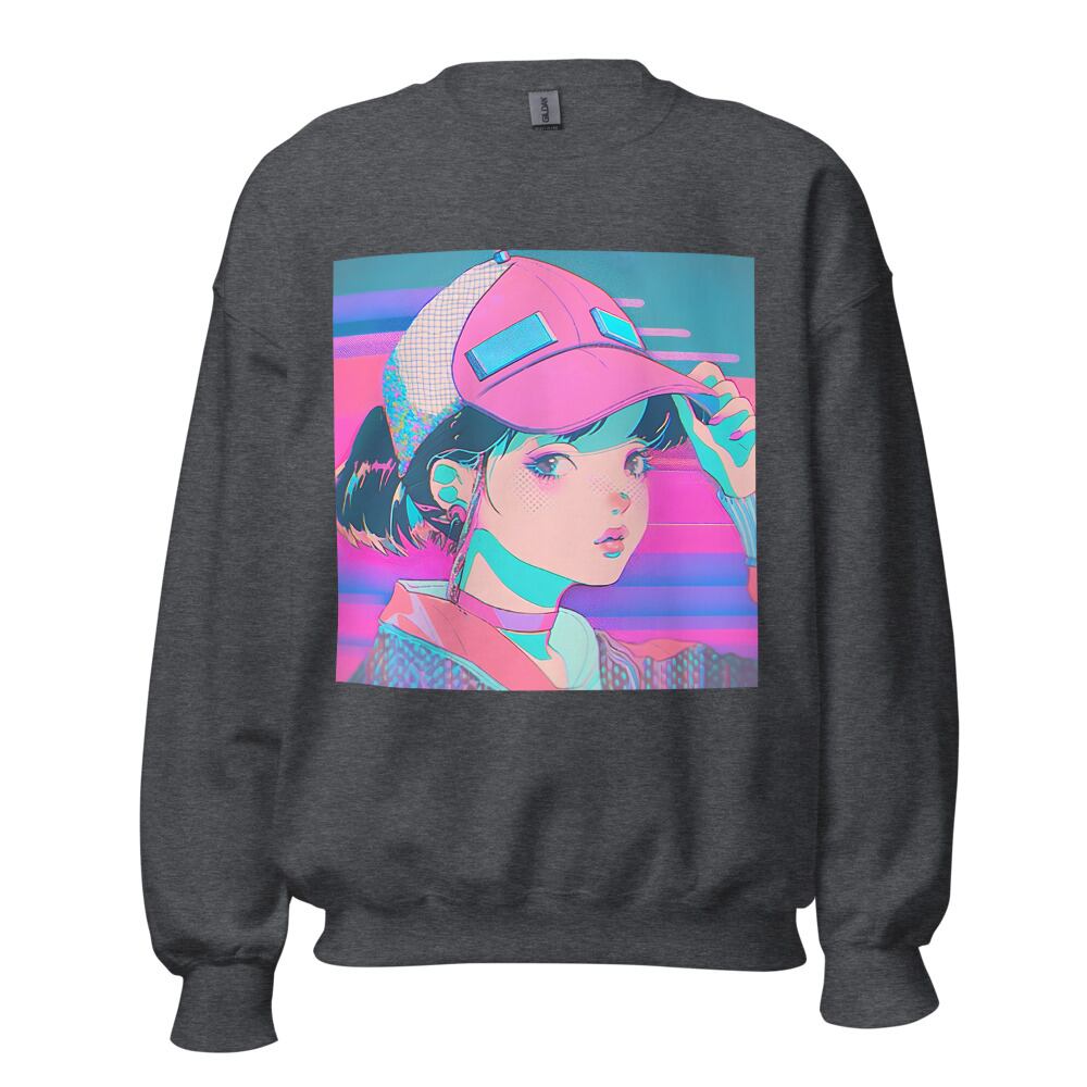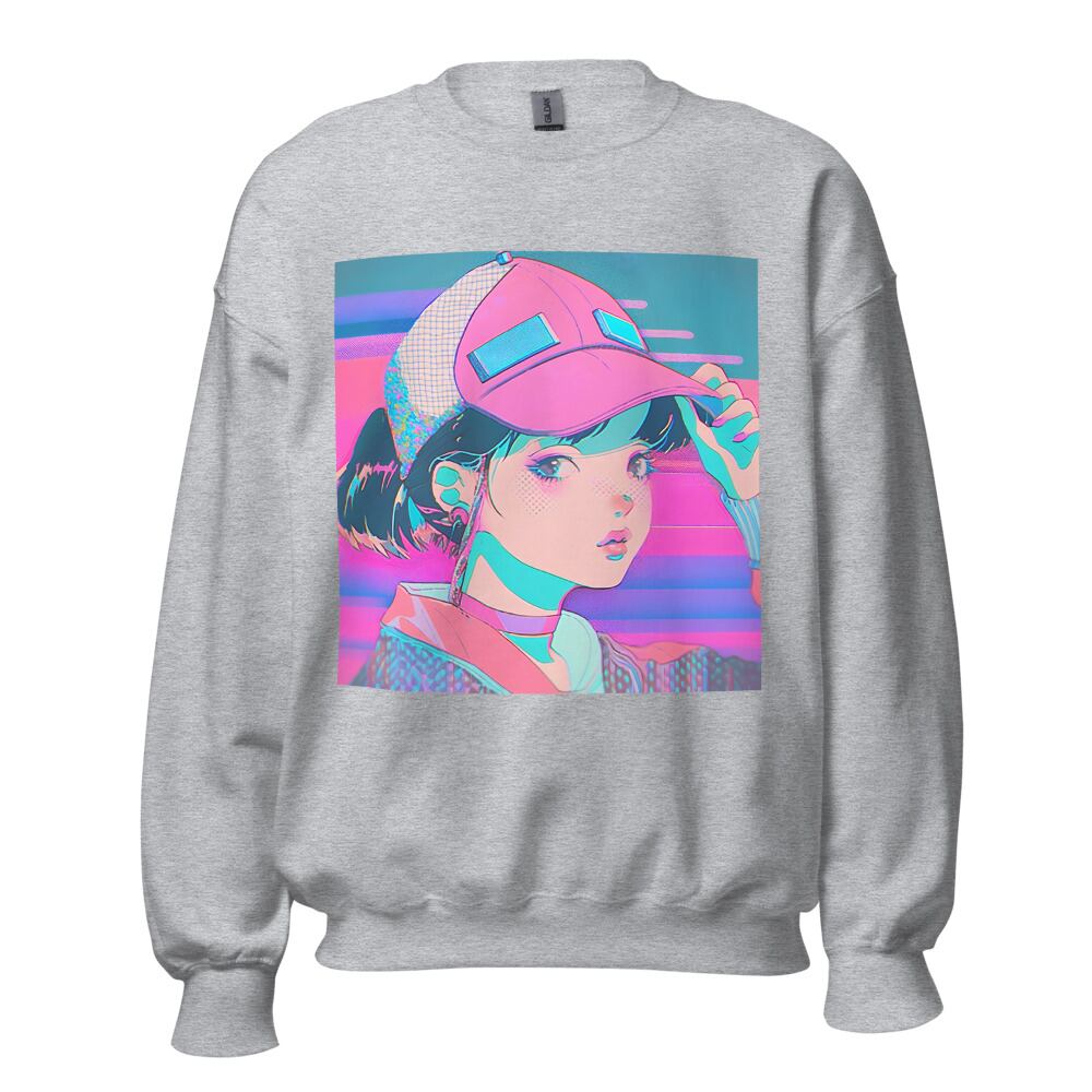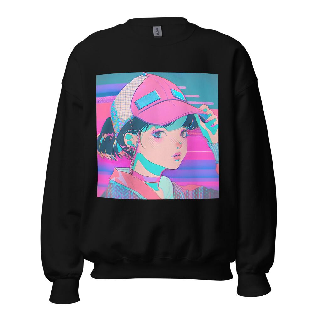 Vaporwave 80s 90s Anime Girl with Big Cap Synthwave Retrowave Citypop Aesthetic Unisex Sweatshirt | RRRS