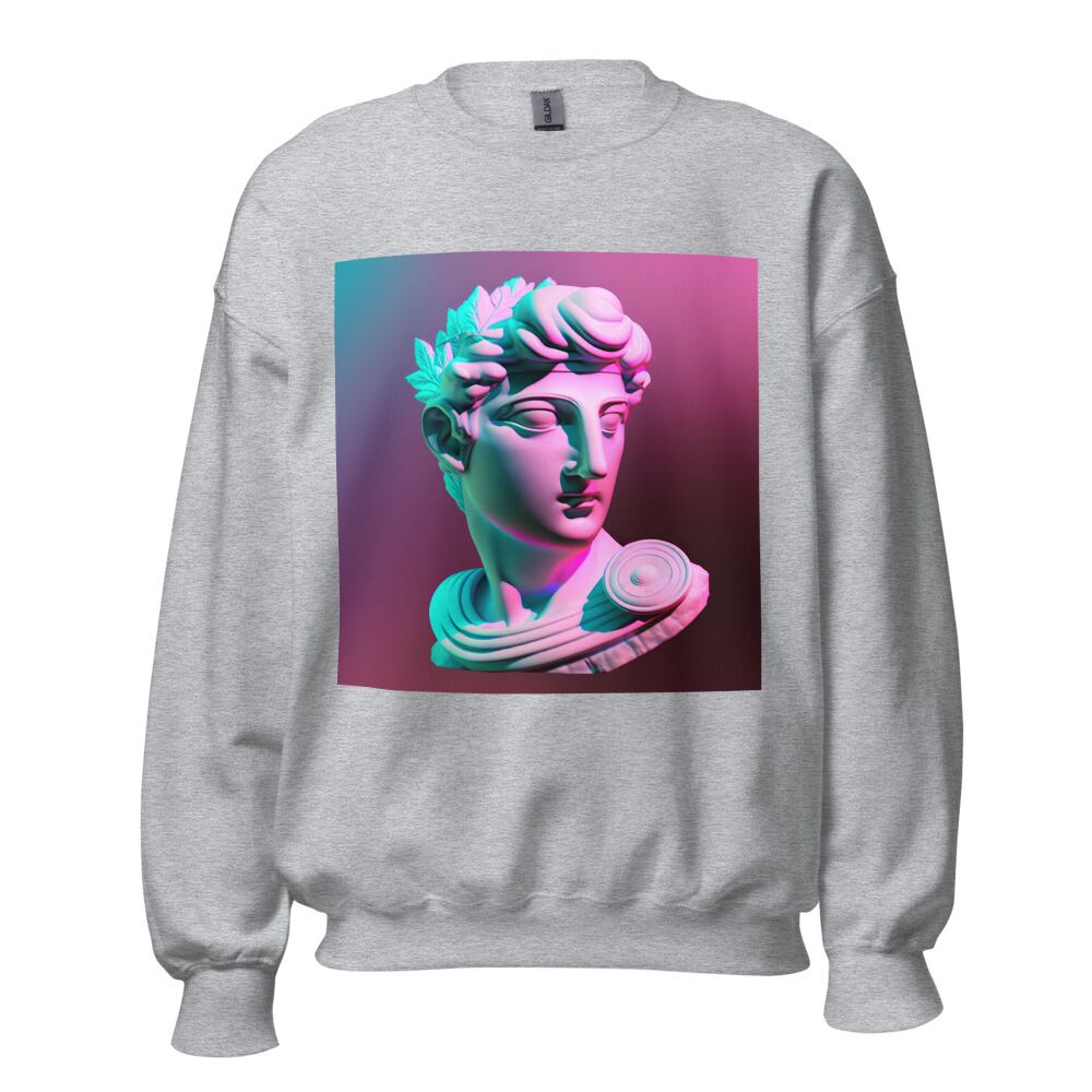 Vaporwave 80s 90s Greek Man with Leaves Sculpture Synthwave Retrowave Citypop Aesthetic Unisex Sweatshirt | RRRS
