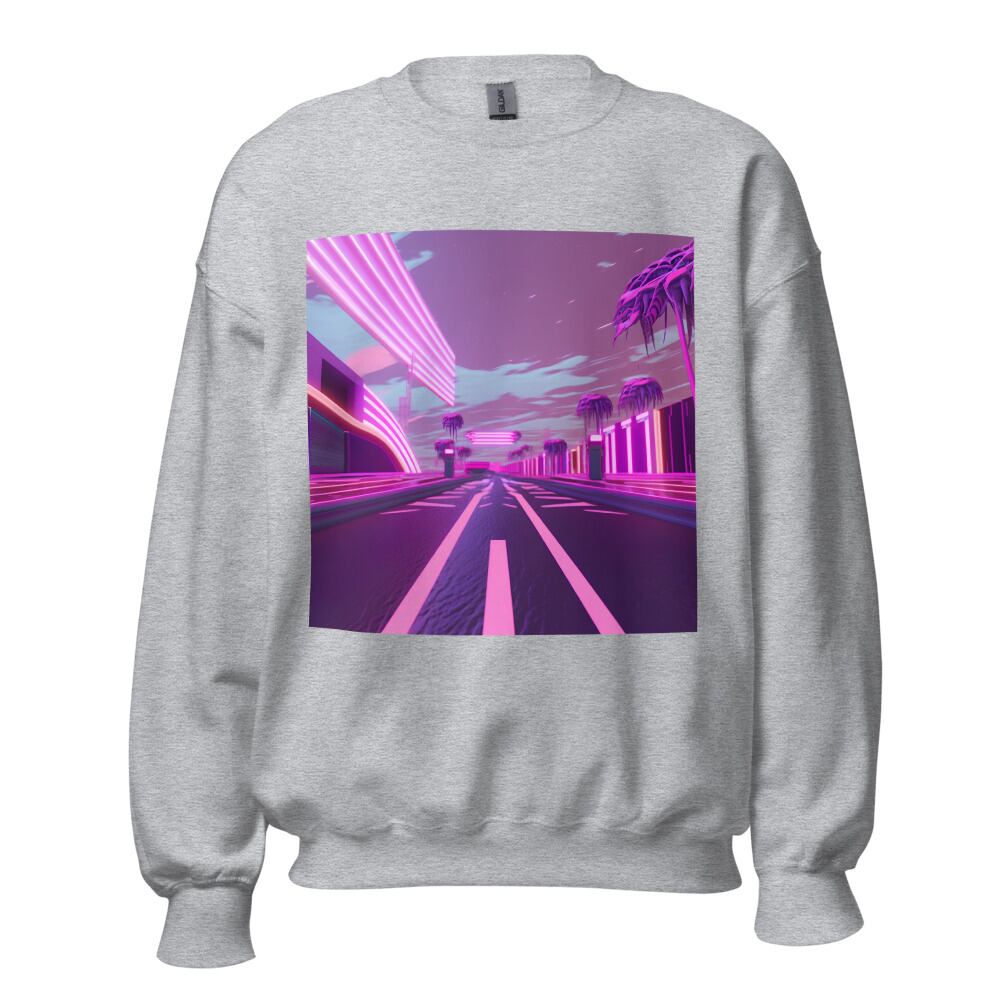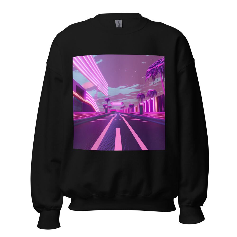 Vaporwave 80s 90s Straight Highway Road Synthwave Retrowave Citypop Aesthetic Unisex Sweatshirt | RRRS