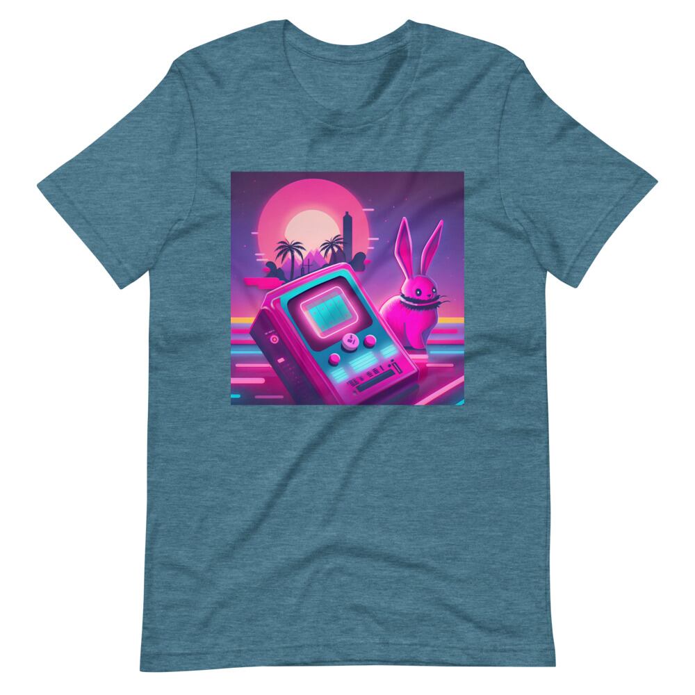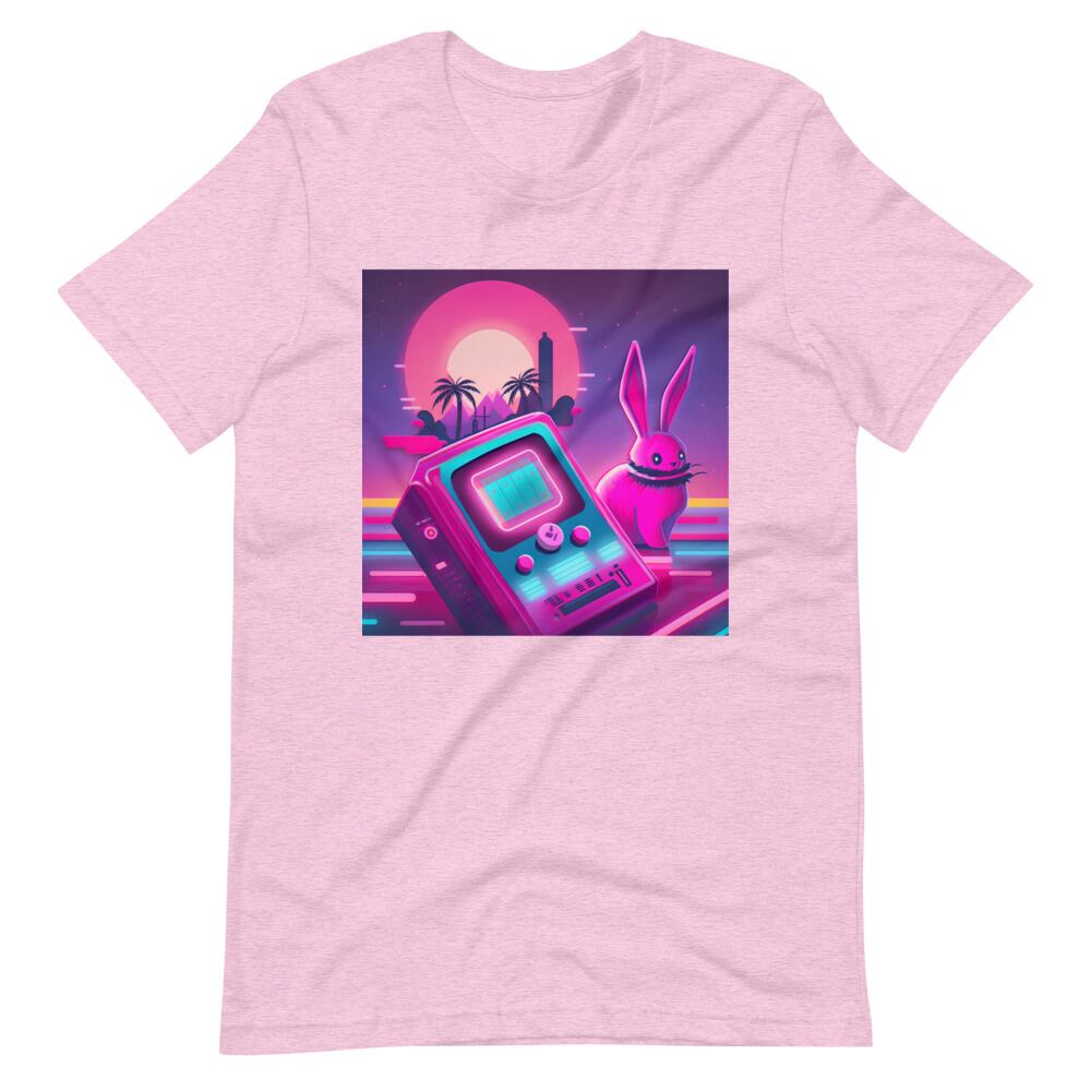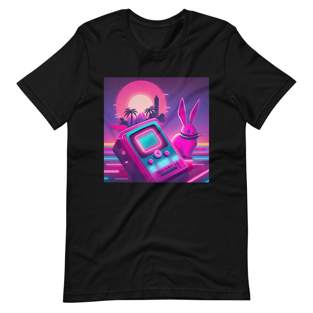 Synthwave Rabbit & Game Neon 80s 90s Retro Vaporwave Citypop Aesthetic Unisex T-shirt Tshirt Tees | RRRS