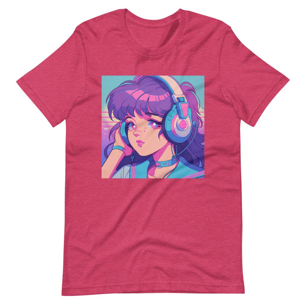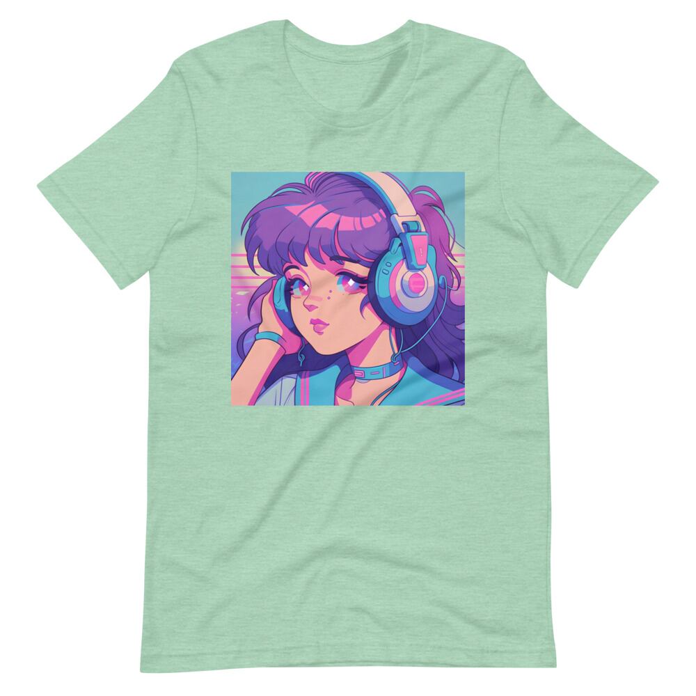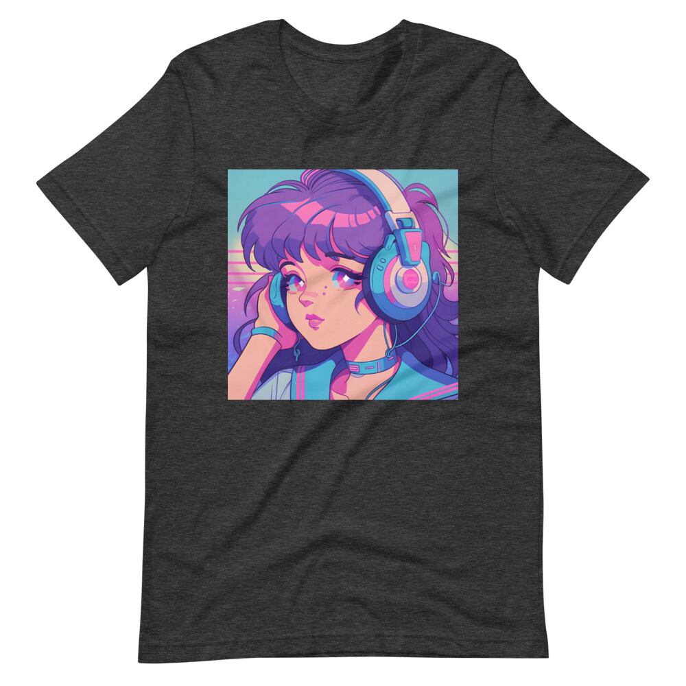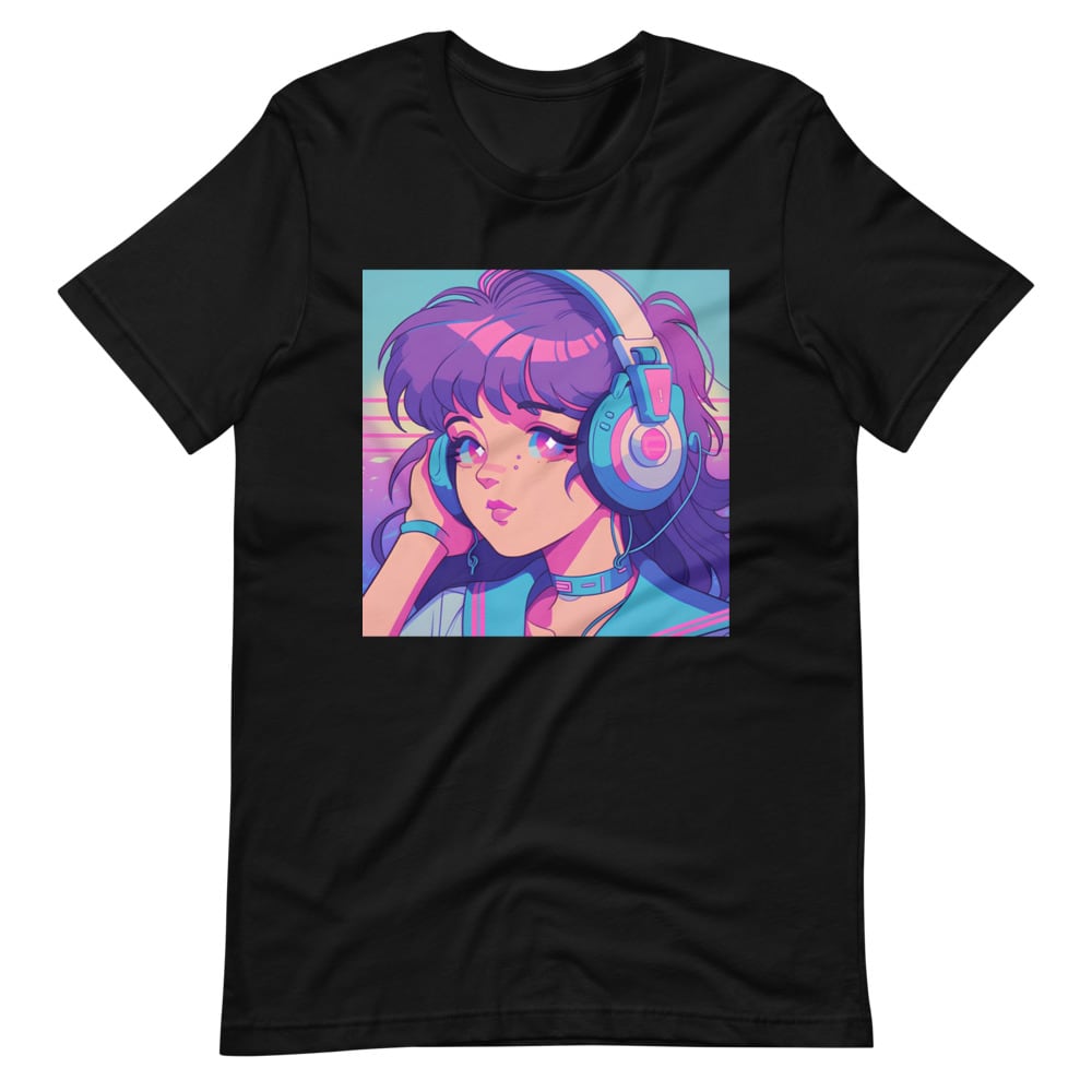 Kawaii 80s 90s Japan Anime Big Headphone Girl Vaporwave Retro Synthwave Citypop Aesthetic Unisex T-shirt Tshirt Tees | RRRS