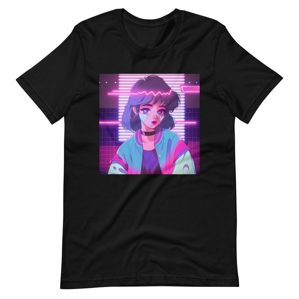 Vaporwave 80s 90s Anime Girl with Stadium Jacket Synthwave Retrowave Citypop Aesthetic Unisex T-shirt Tshirt Tees | RRRS
