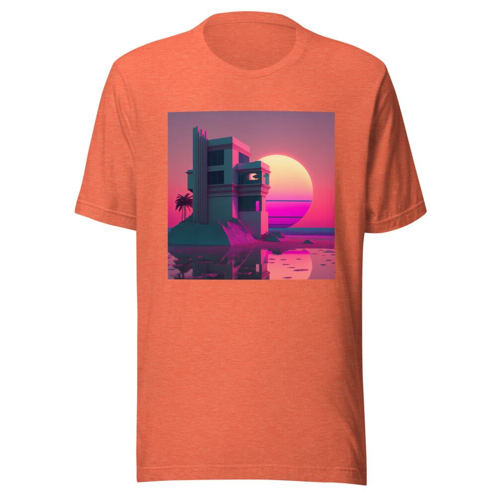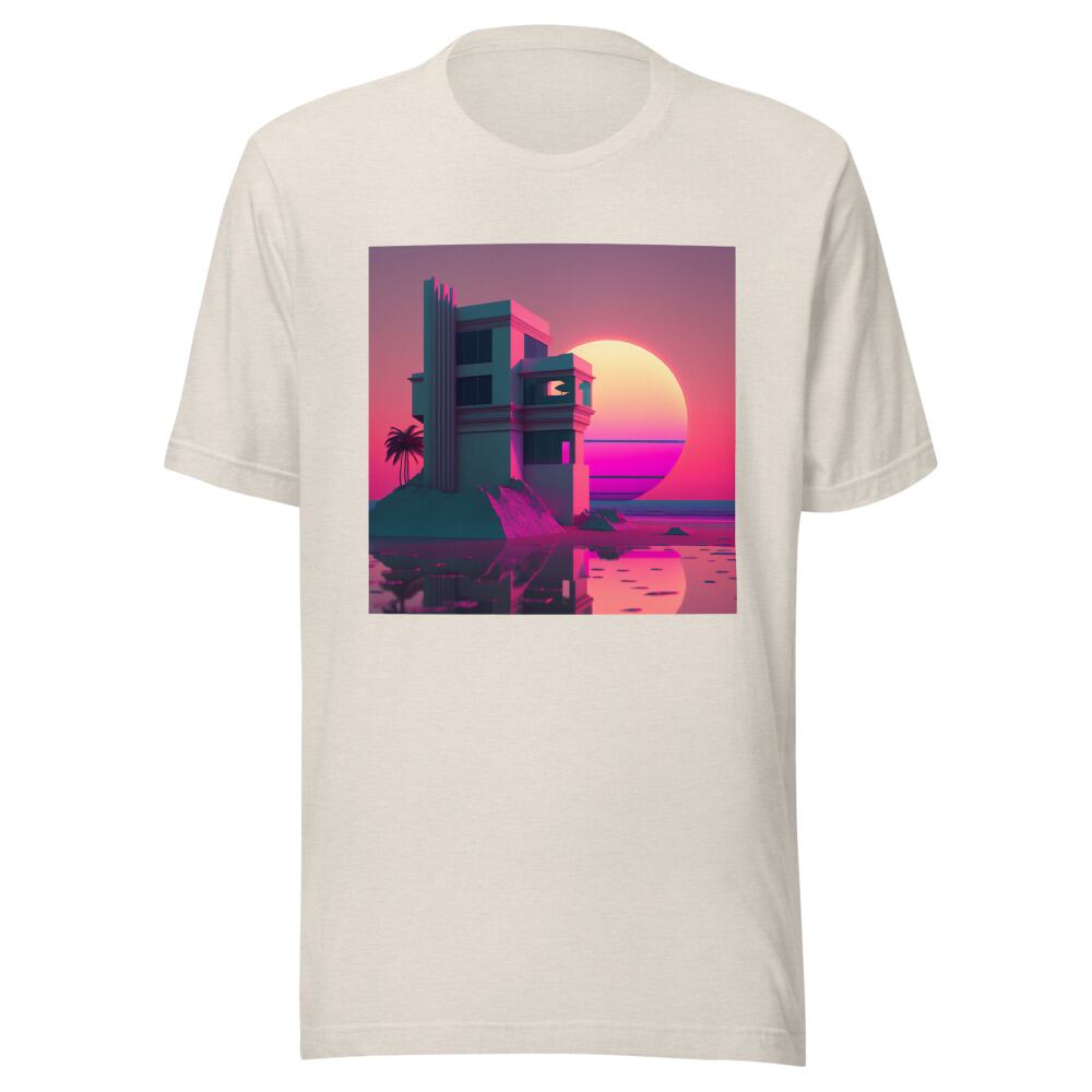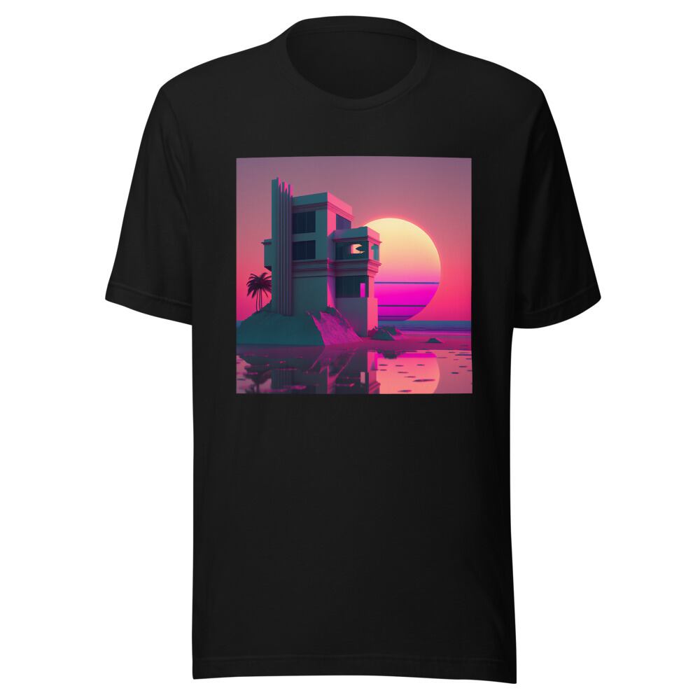 Vaporwave 80s 90s Building at the sunset beach Synthwave Retrowave Citypop Aesthetic Unisex T-shirt Tshirt Tees | RRRS