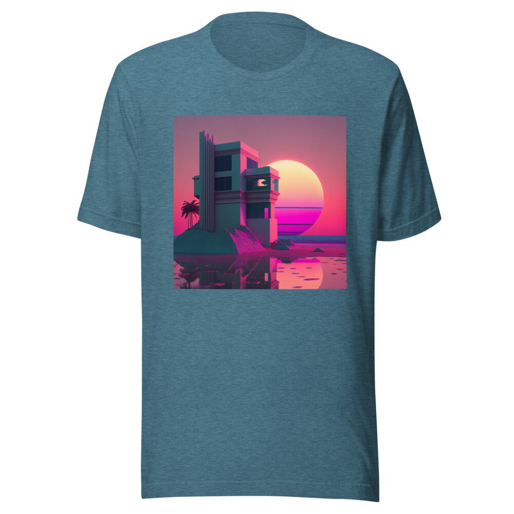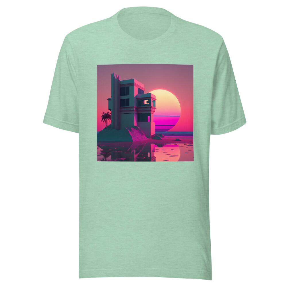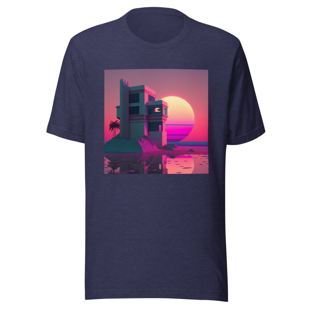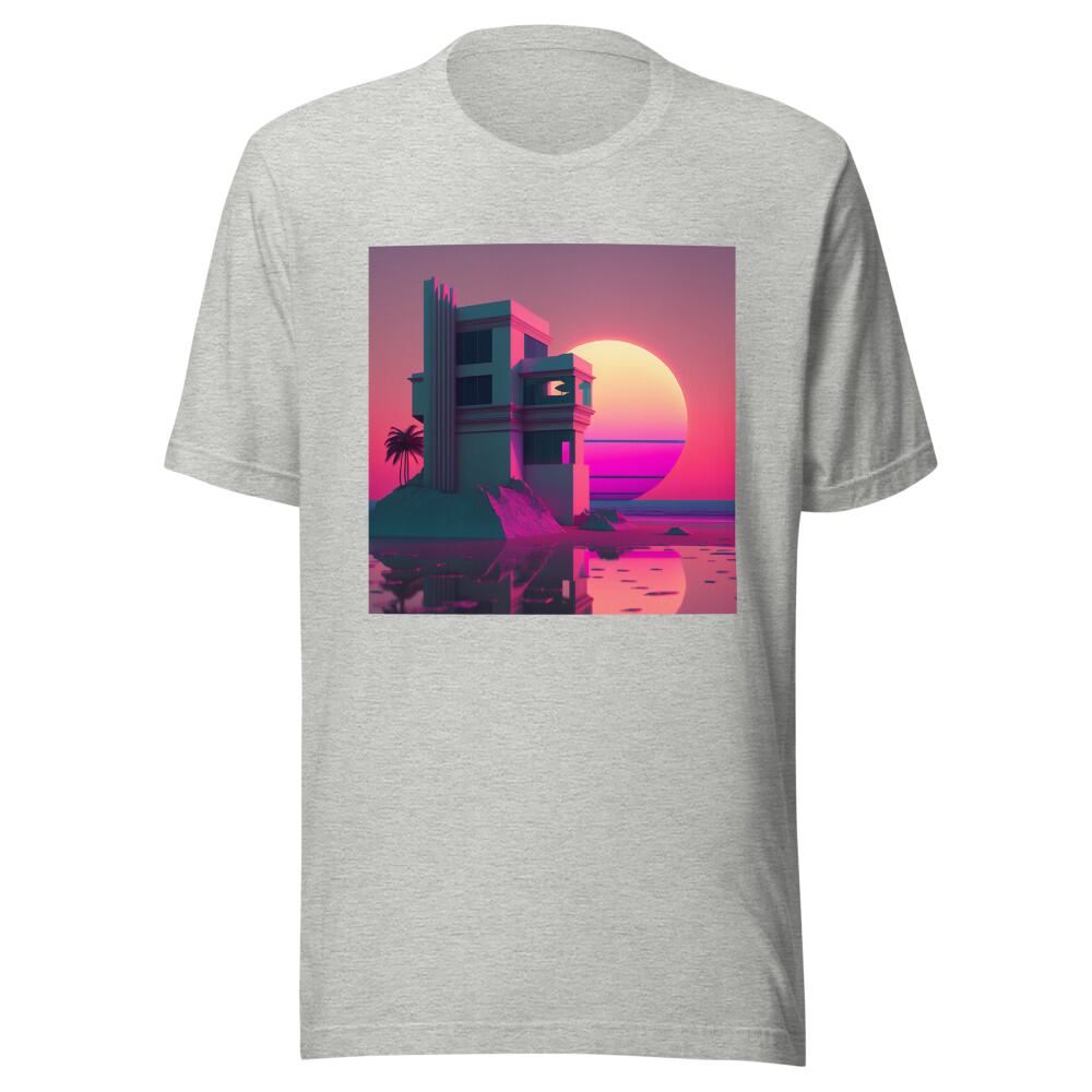 Vaporwave 80s 90s Building at the sunset beach Synthwave Retrowave Citypop Aesthetic Unisex T-shirt Tshirt Tees | RRRS